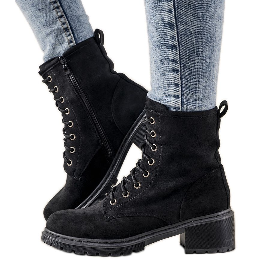 Elegantne i univerzalne potrebne čizme izrađene su od ekološke kože antilop u bezvremenskoj crnoj boji. Dizajn kombinira moderan, traper potplat s praktičnošću svakodnevne uporabe - idealan je model za jesensku i zimsku sezonu, koji se lako možete uklopiti s mnogim stilovima.