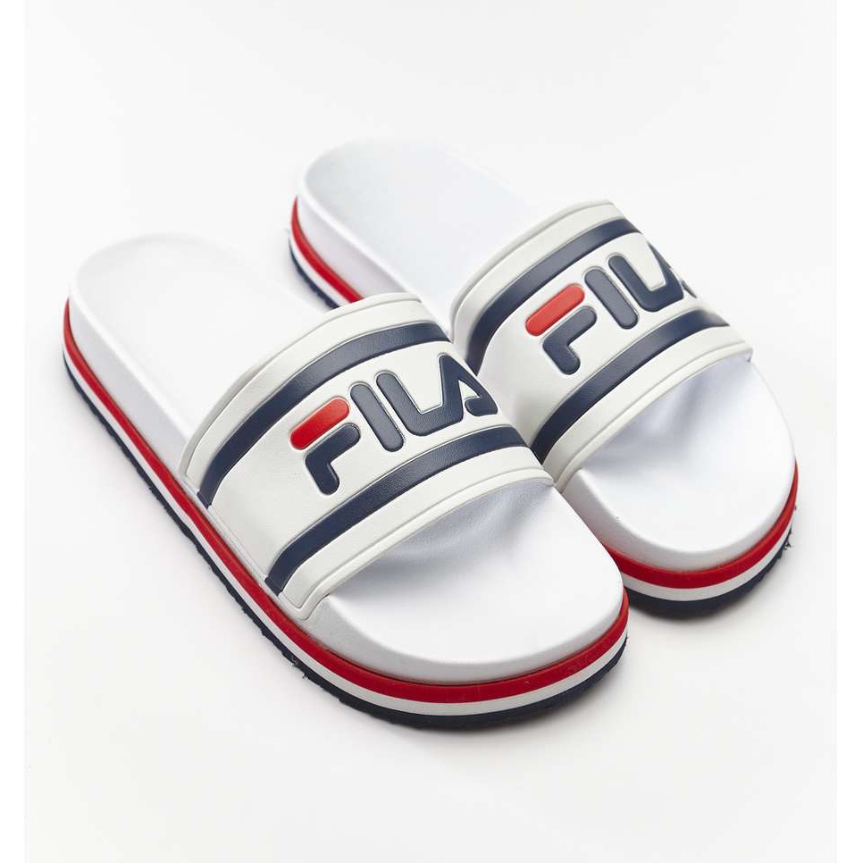 FILA MORRO BAY ZEPPA WMN 02P Bijela/Stripe - Ženski sportovi jastučići kombinirajući udobnost i jednostavan, modni izgled. Napravljen od sintetičkog materijala, s profiliranim umetom koji se podudara s oblikom stopala i mekim, tekstilnim završetkom s dna pojasa, osiguravaju udobnost čak i tijekom duljeg nošenja. Anti -klisni podmetač gazišta povećava prianjanje, a suptilna prijava proizvođača naglašava sportsku prirodu cipela.