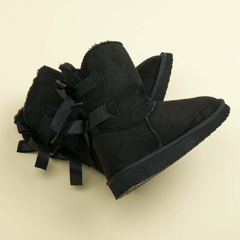Crne mukluke s mašnama savršen su izbor za zimske šetnje i elegantne izlaske. Njihova klasična boja pristaje uz većinu odjeće, a posvećenost detaljima, poput simpatičnih mašnica, izdvaja ih od ostale zimske obuće.