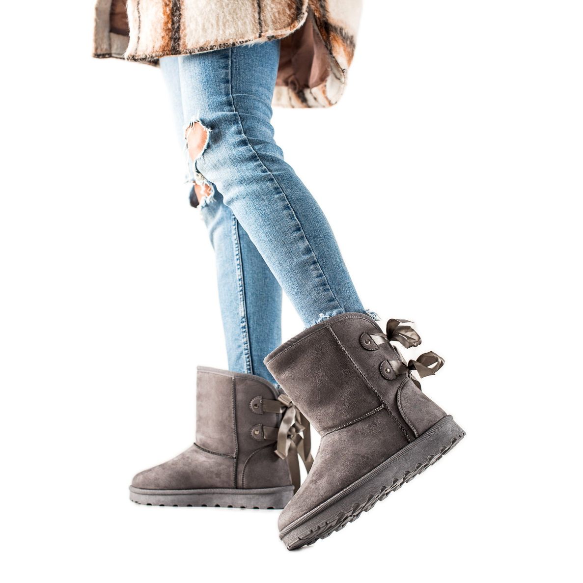 Detalji: TRENDI Mukluki s mašnom siva