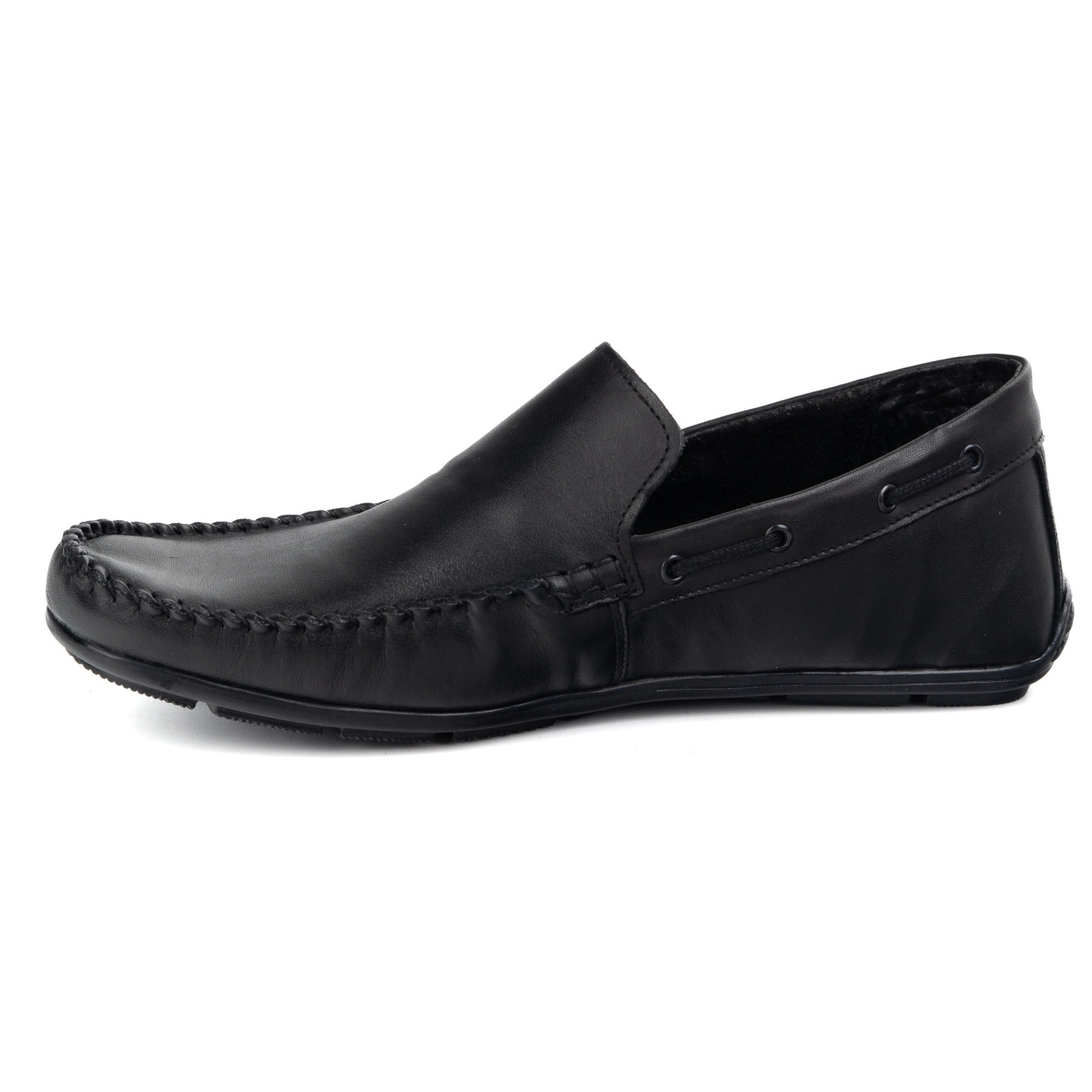 Crni loaferi razlikuju se minimalističkim rezom, suptilnim šivanjem i karakterističnim završetkom gornjeg dijela. Umetnuta struktura čini svoju instalaciju brzom i ugodnom, a fleksibilni potplat jamči slobodu kretanja, što je ključno za aktivnog čovjeka.