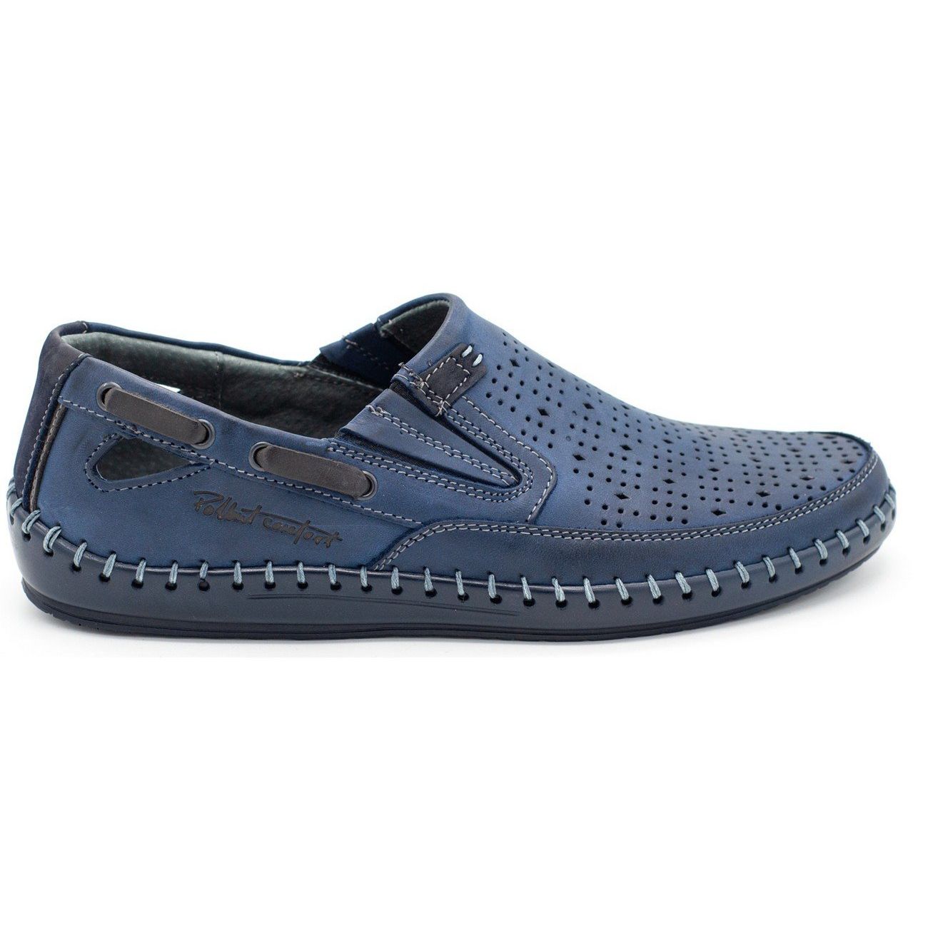 Muške ažurne mokasine tamnoplave boje Polbut J68L savršen su izbor za ljetne dane, spajajući eleganciju s iznimnom udobnošću nošenja. Izrađene od visokokvalitetne prirodne kože, izvana i iznutra, jamče odgovarajuću toplinsku izolaciju, što znači da stopala ostaju dobro prozračena i za vrućih dana.