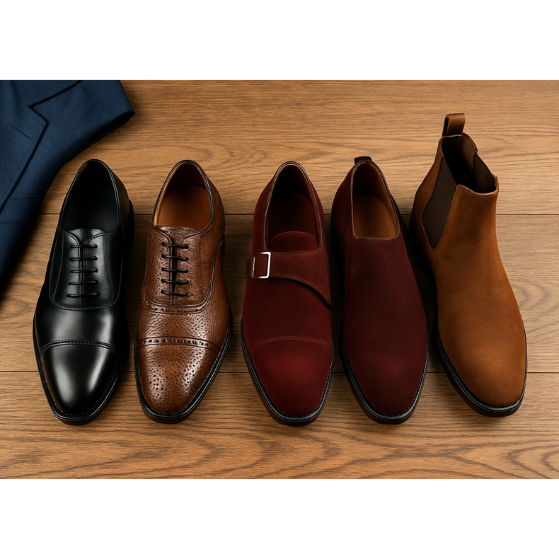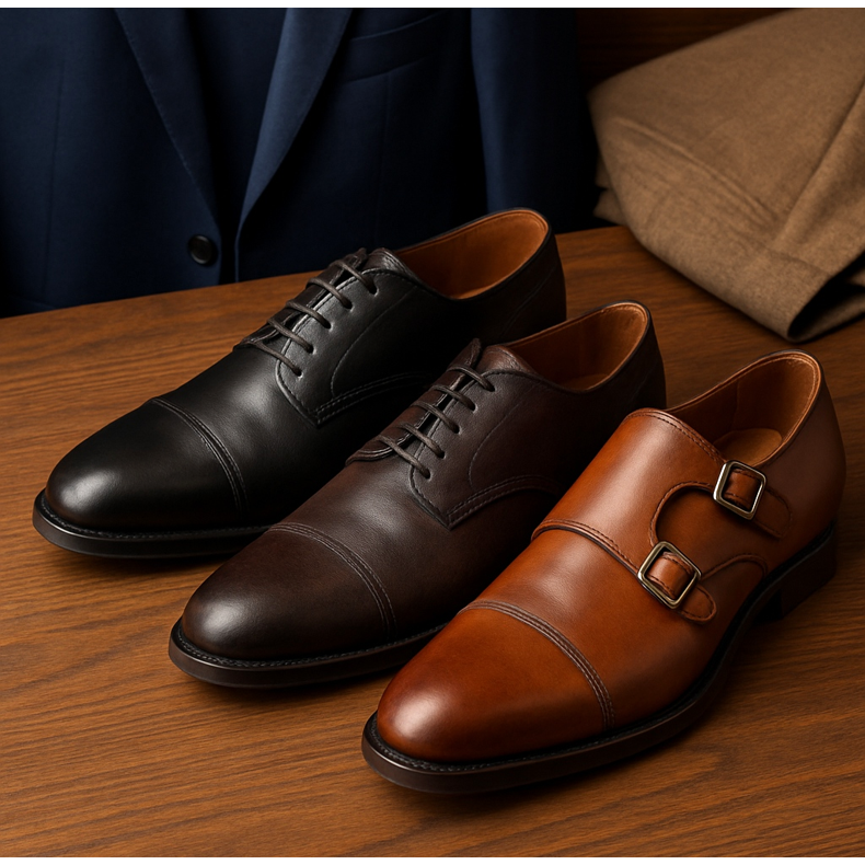 Derby cipele, brogues, monk remenčići, mokasinke. Boje: smeđa, bordo, mornarsko plava.