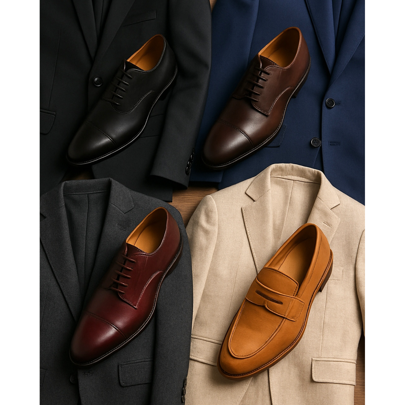 Mornarsko plavo odijelo → Crna, smeđa, bordo - sve ide. Najpopularniji poslovni izbor.