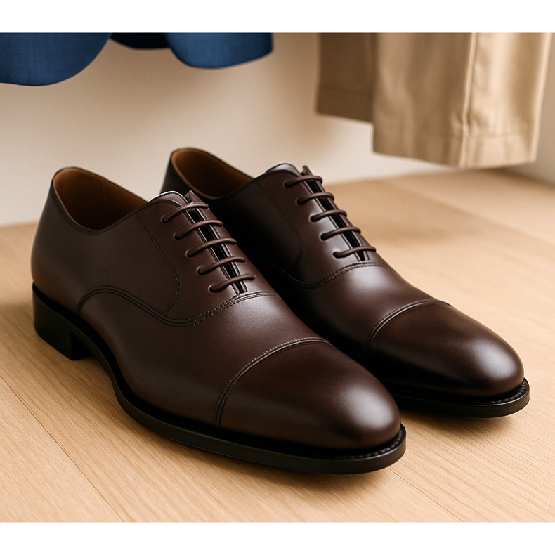 Za vjenčanje odaberite cipele od najkvalitetnije kože - full grain ili top grain. Koža mora biti glatka, bez vidljivih nedostataka i dobro obrađena. Izbjegavajte reljefnu kožu koja imitira teksturu i eko kožu - izgledaju jeftino. Potplat bi trebao biti kožni ili kvalitetni gumeni (malo udobniji). Provjerite izradu: jednake šavove, dobro spojen potplat koristeći Goodyear welted ili Blake metodu. Unutrašnjost cipela trebala bi biti izrađena od kože - osigurava bolju ventilaciju tijekom duge ceremonije.