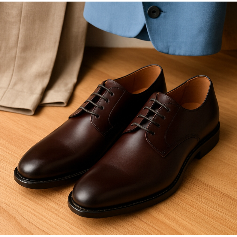 Derby cipele su otvorene cipele na vezanje, nešto manje svečane od oksfordica, ali ipak sasvim primjerene za vjenčanje. Posebno su prikladni za rustikalna vjenčanja, vrtne zabave ili ljetne proslave. Glatki derbi tamno smeđe ili bordo izvrstan je izbor za bež, maslinasto ili plavo odijelo. Obični derbi (bez brokata) svečaniji je od modela s ukrasima. Ovo je izvrsna opcija za goste koji cijene udobnost - derby cipele obično su udobnije ako se nose dulje vrijeme.