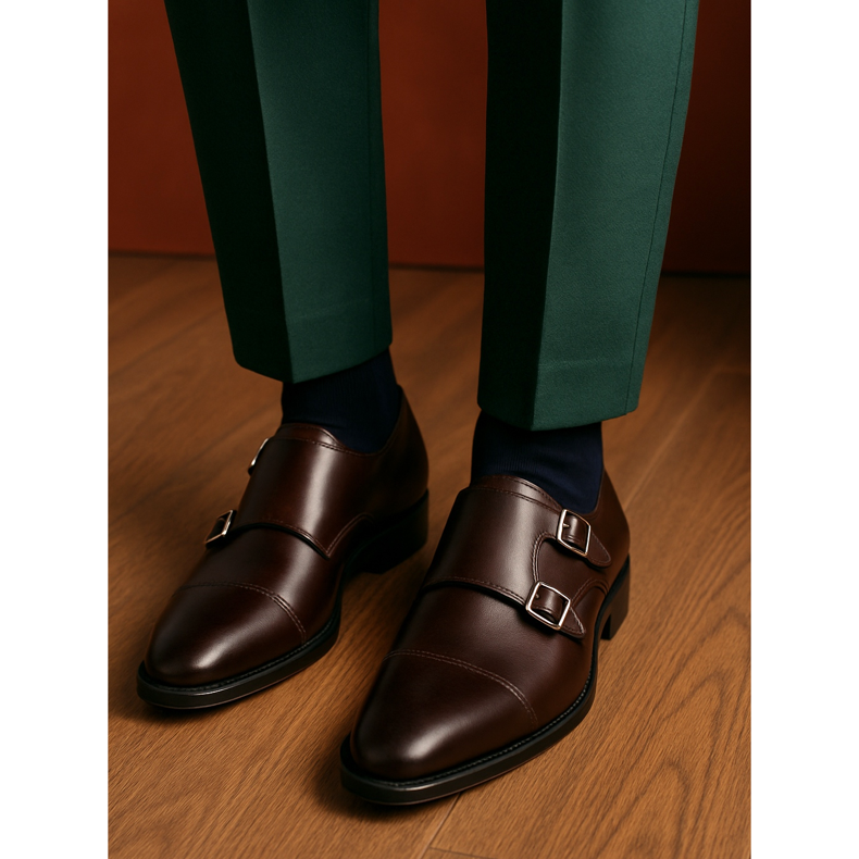 Monks, odnosno cipele s kopčom umjesto vezice, moderna su alternativa klasičnim cipelama na vezanje. Jednostruki monk (jedna kopča) je prigušeniji, dupli monk (dvije kopče) izražajniji. Savršeno pristaju uz moderna, uska odijela u neobičnim bojama - tamnoplava, vino, zelena. Redovnici u tamno smeđoj ili crnoj boji bit će savršeni za urbano, industrijsko ili glamurozno vjenčanje. Ovo je izbor za samopouzdane muškarce koji se žele istaknuti stilom, a pritom zadržati eleganciju.