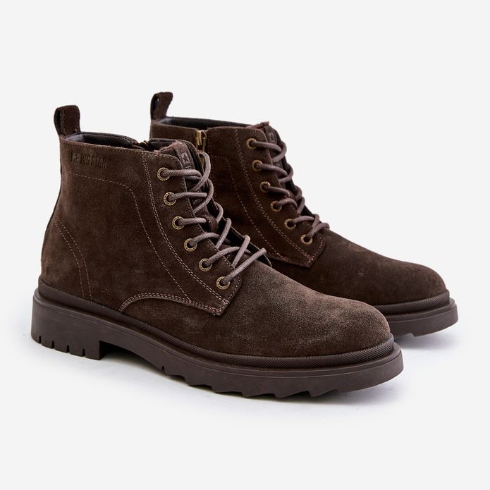 Detalji: Muške čizme izolirane od brušene kože s patentnim zatvaračem Big Star OO174229 Smeđe smeđa