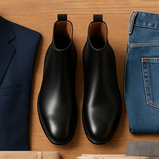 Najvažniji par gležnjača u muškoj garderobi. Univerzalna, elegantna, savršena za odijela i traperice. Crne Chelsea čizme temelj su vaše jesensko-zimske garderobe.