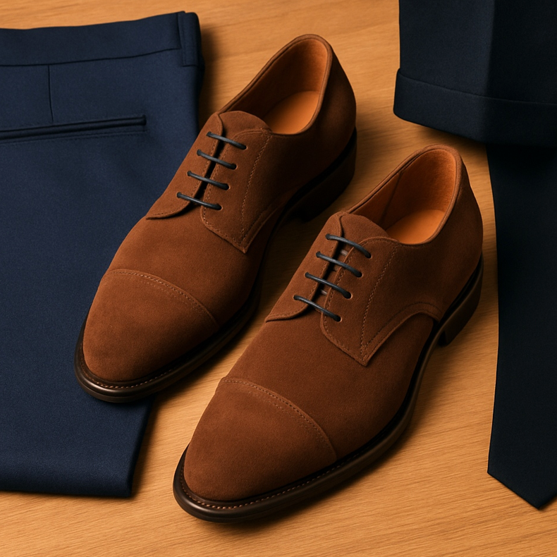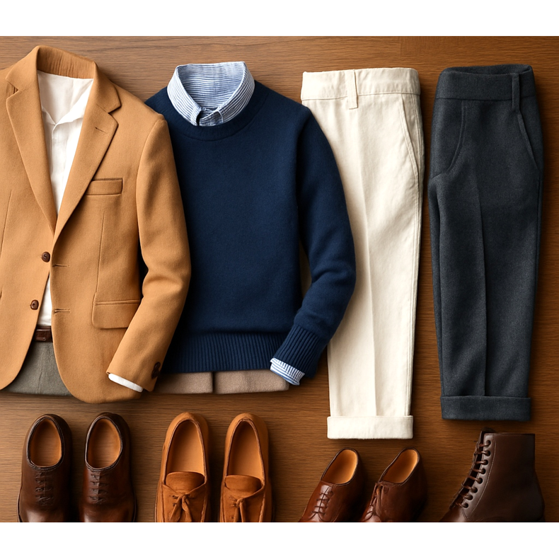 - Sako + košulja bez kravate — cipele: brogues, derbies, loafers.