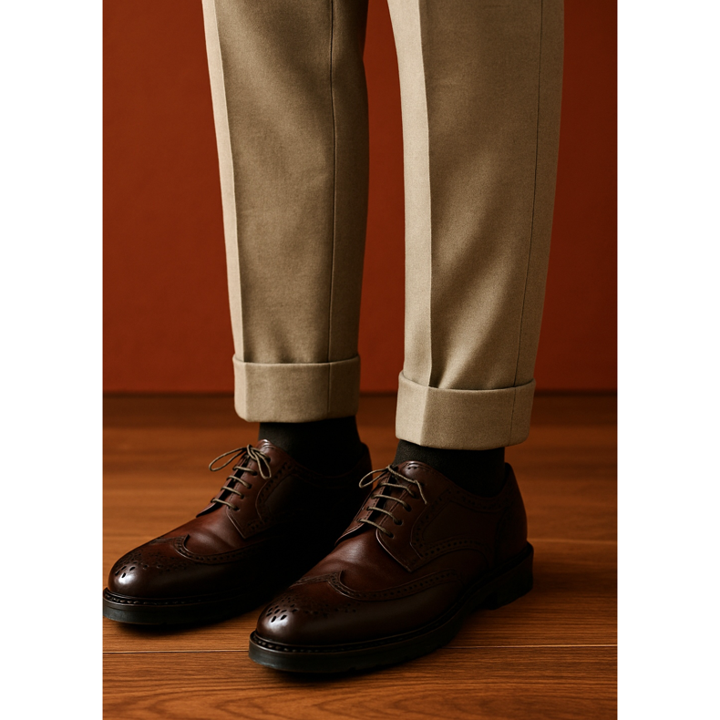 - Srednje i visoke visine — manšete vizualno skraćuju nogu; kod visokih muškaraca uravnotežuju proporcije.