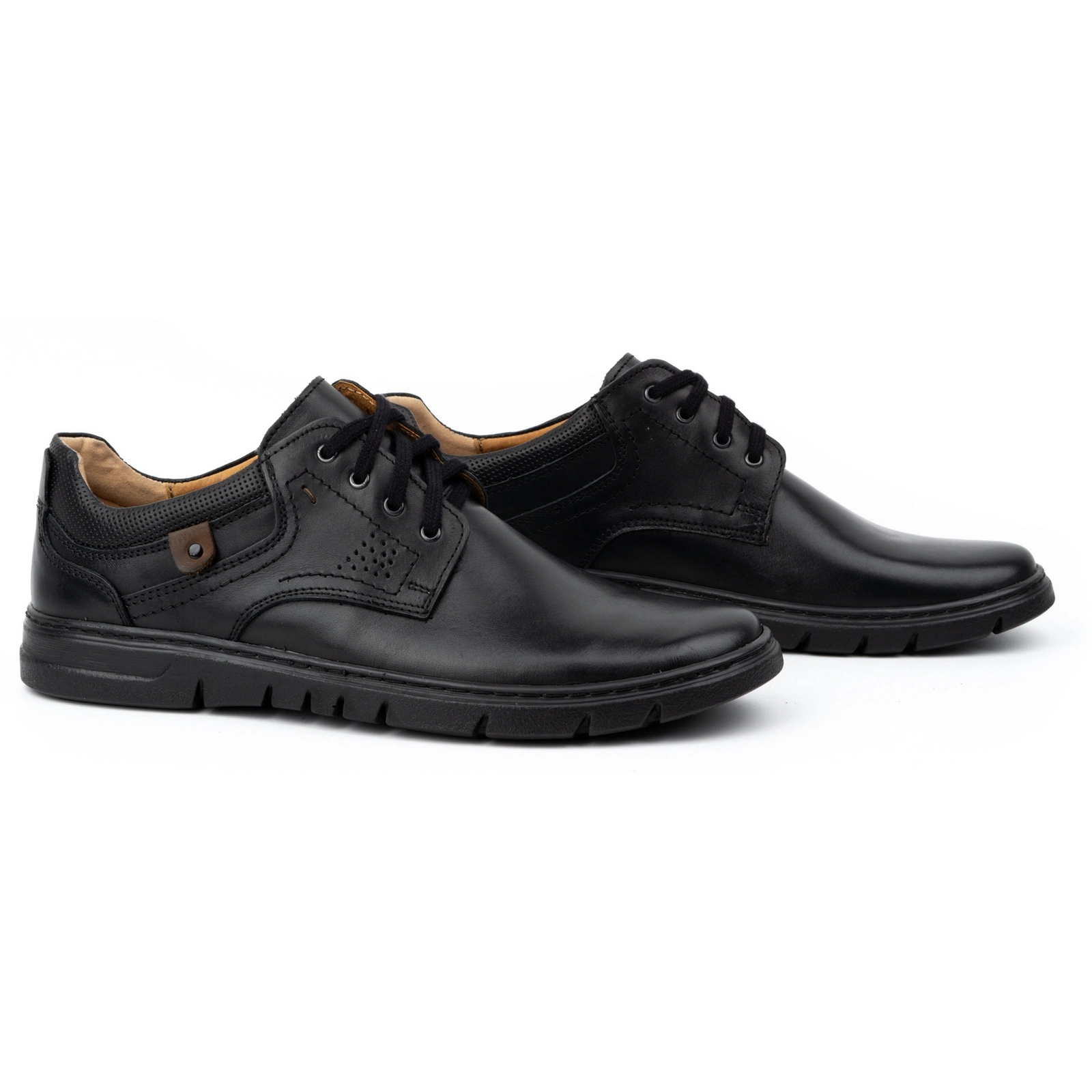 Otkrijte muške kožne cipele, maglu casual 57kam od poljskog proizvođača Kampol - savršen izbor za muškarce koji cijene eleganciju u kombinaciji s udobnošću. Ove klasične cipele u crnoj boji, s smeđim dodacima, bit će sjajno u svakodnevnim stilizacijama, dodajući karakter svakom setu.