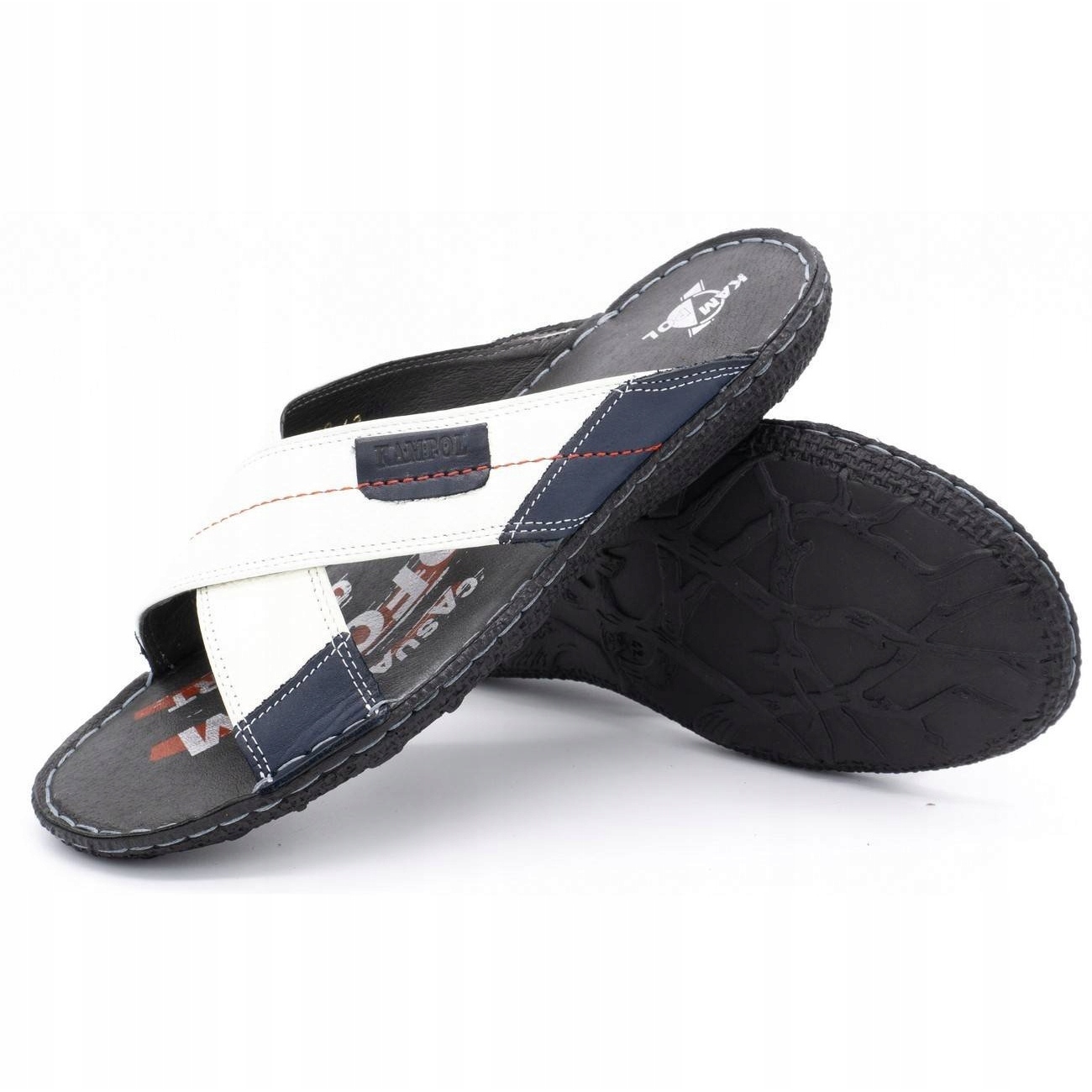 Pojedinosti: Kampol Muške kožne papuče 200 / B bijele bijela mornarsko plava