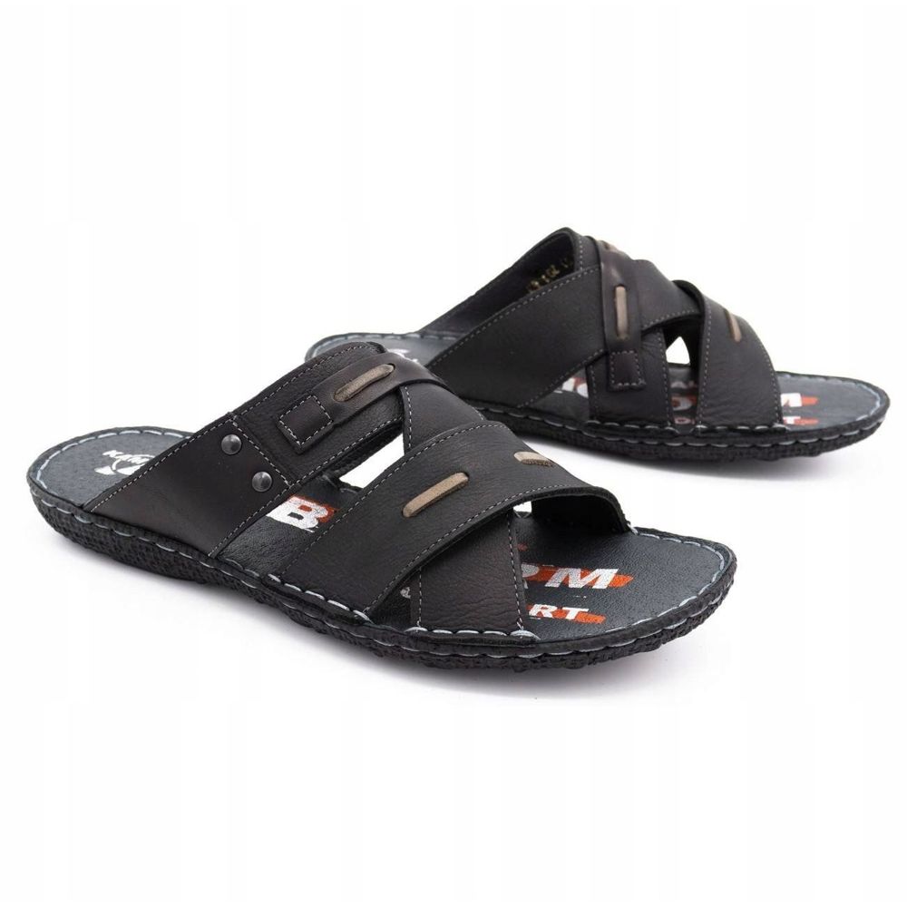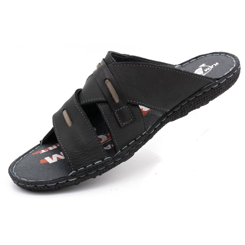 Kampol Muške kožne papuče 201/3 crne crna