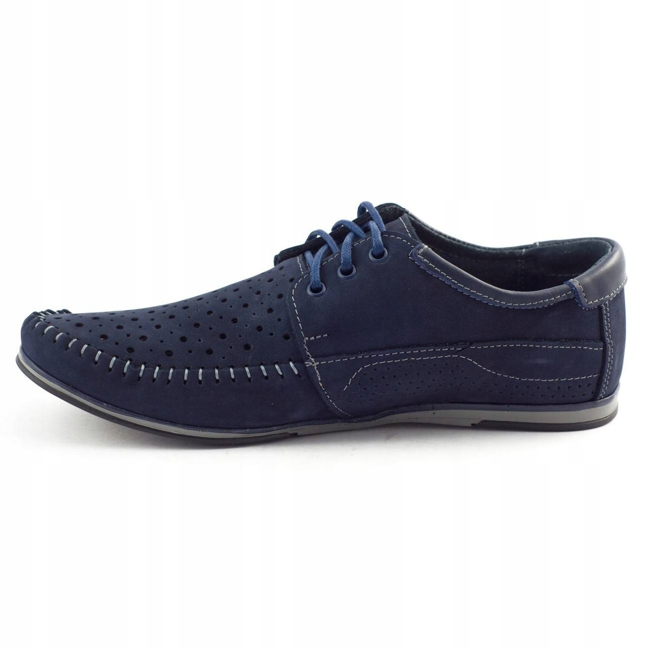 Komodo muški mokasini 875 - mornarsko plava, idealna za ljeto. Elegantna i lagana, izrađena od prirodne kože visoke kvalitete. Otvoreni nožni prst i bočni umetci pružaju bolju ventilaciju, zahvaljujući koje stopala ostaju svježa tijekom toplih dana. Tanki, fleksibilan potplat od umjetnog materijala i kožni umetak jamči udobnost čak i tijekom dugog hodanja. Duboka nijansa šipak dobro se slaže s povremenim stilizacijama - od chinosa do kratkih hlača.