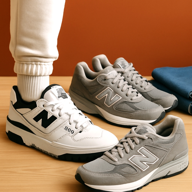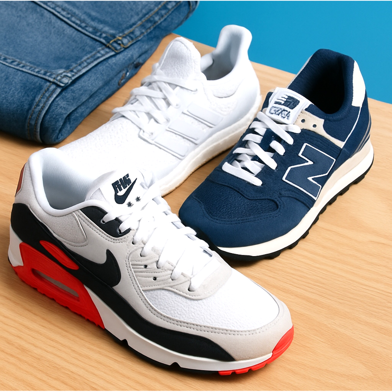 Air Max 90 (sivo/bijelo), New Balance 550 (bijelo/sivo), Ultraboost (crno/sivo). Ležerno, udobno, univerzalno.