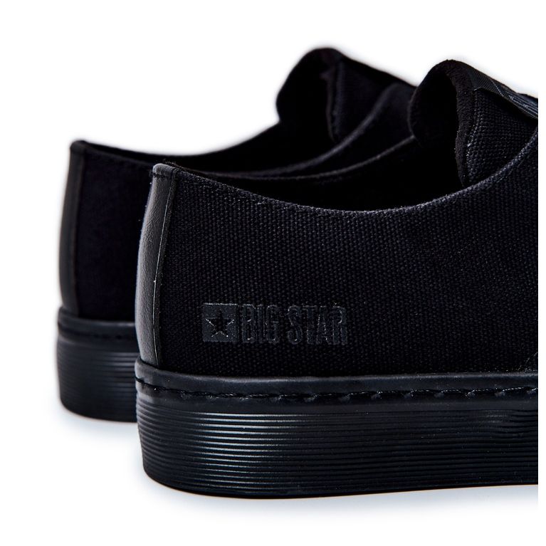 Moderne, udobne muške tenisice poljske marke Big Star u univerzalnoj crnoj boji. Gornji dio je izrađen od izdržljivog tekstilnog materijala, unutrašnjost je završena mekim ekološkim materijalom, a materijalni umetak osigurava utjehu cijeli dan. Model je opremljen vezanje koje vam omogućuje da savršeno uskladite stopalo i učvršćeno pričvršćivanje za bolju stabilizaciju. Cipele imaju suptilnu platformu i potplat koji ne klipi, koji povećava prianjanje i udobnost upotrebe.