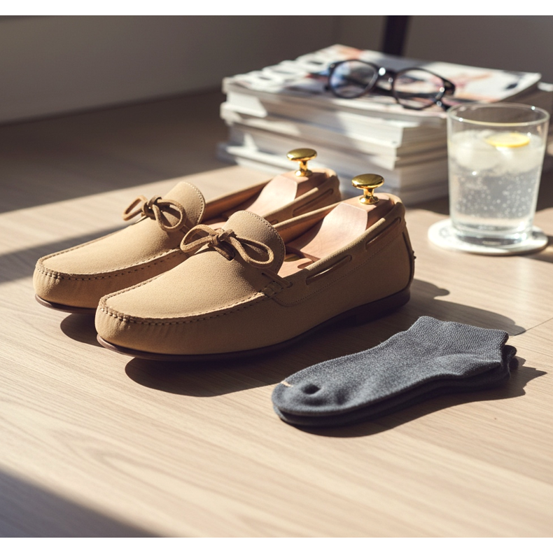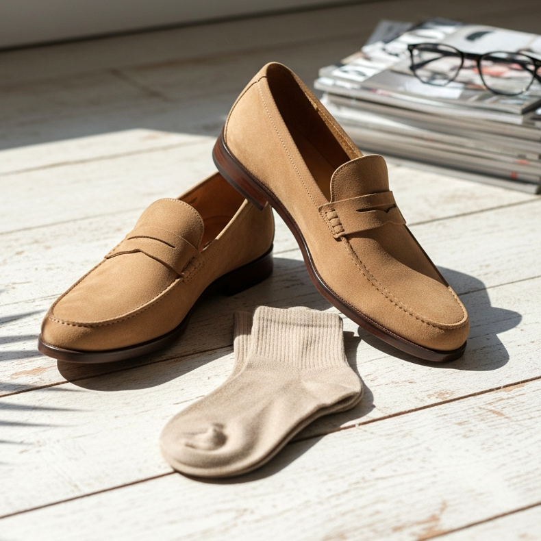 Najbolji izbor za ljeto su natikače. Elegantne su, ali manje formalne od oksfordica. Možete odabrati klasične penny mokasine ili mokasine s resicama. Ako dress code dopušta, nosite ih bez vidljivih čarapa (koristeći niske čarape, tzv. nevidljive čarape). Izloženi gležanj dodaje lakoću i hladnoću stajlingu.