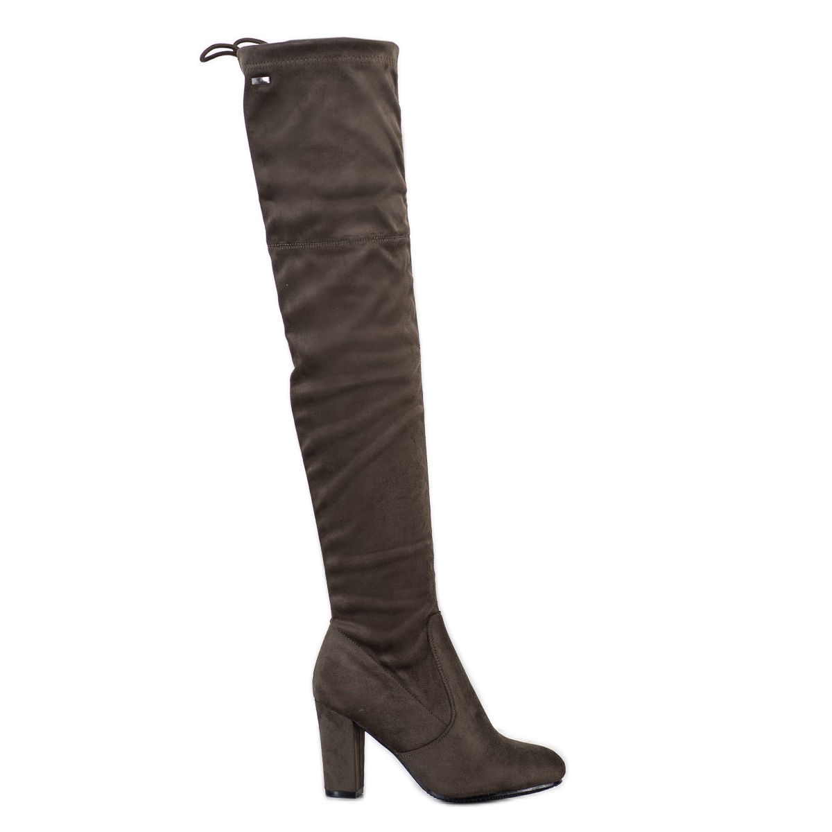 Kayla čizme iznad koljena opremljene su ugrađenom, ojačanom petom i zaobljenim vrhom, što ih čini udobnima, a istovremeno osiguravaju stabilnost pri hodu. Blok potpetica visine 8,5 cm dodaje eleganciju i vitkost silueti, a potplat od čvrste plastike s gazištem osigurava dobro prianjanje i udobnost na raznim podlogama.