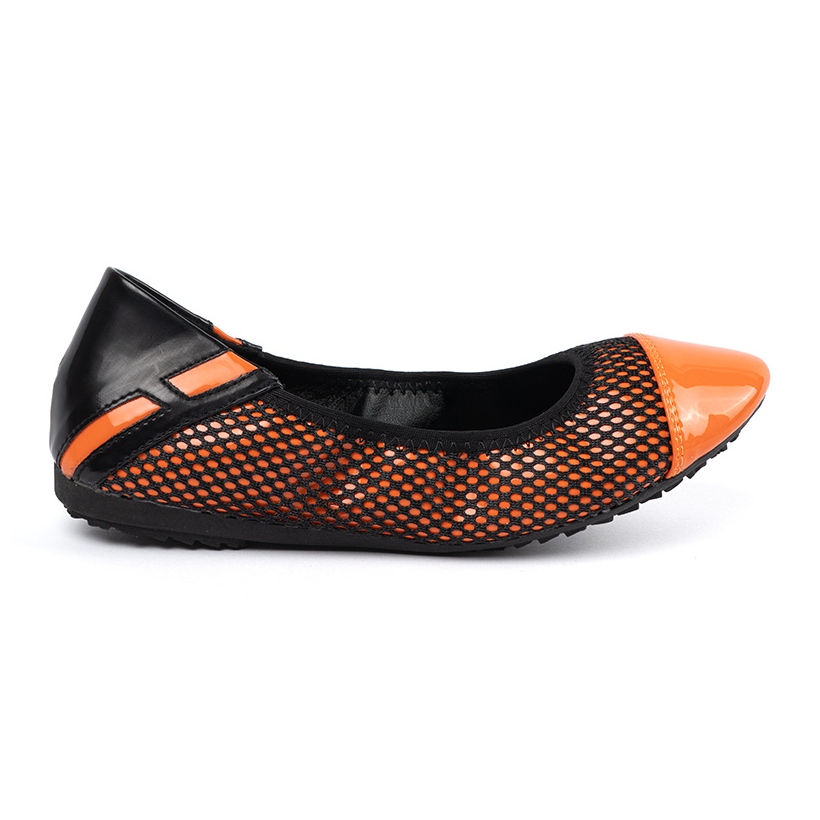Balerine su opremljene glatkim plastičnim potplatom, što osigurava udobnost na svakom koraku. Živa narančasta boja u kombinaciji s crnom mrežicom daje im izražajni, originalni lik koji će obratiti pažnju u svakoj situaciji.