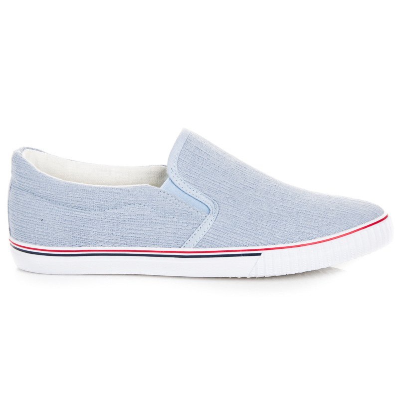 Njihova plava nijansa daje ženstveni šarm, pa se slipovi dobro slažu ne samo sa sportskom odjećom, već i sa ljetnim haljinama. Visina platforme od 3 cm čini cipele udobnim i ne opterećuje stopala.
