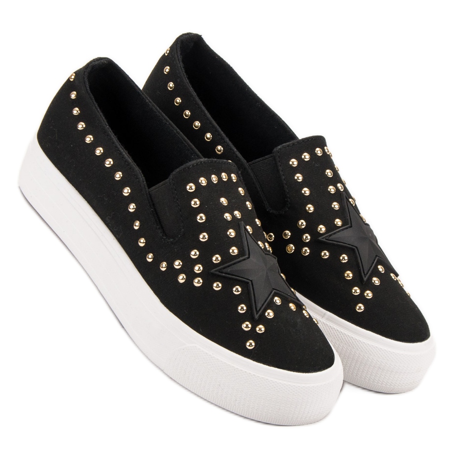 Njihov minimalistički, crni dizajn ukrašen spektakularnim zvjezdastim kamenčićima daje im rock karakter zahvaljujući kojem će lako privući pozornost okoline. Tenisice karakterizira niska visina i mekana peta koja osigurava stabilnost i udobnost nošenja tijekom cijelog dana.
