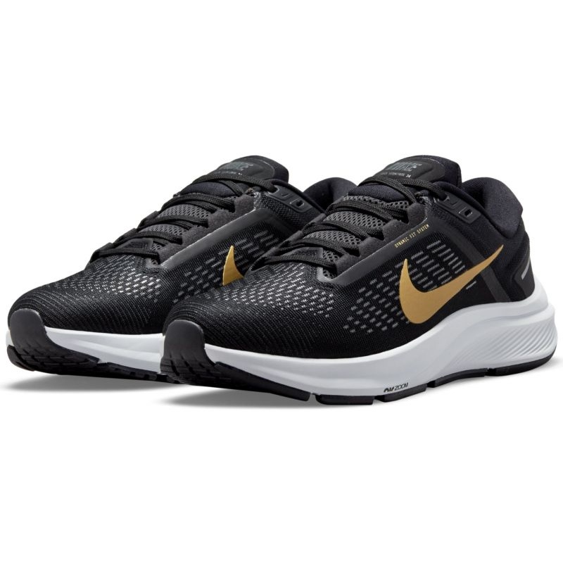 Zahvaljujući elegantnoj crnoj boji s bijelim i zlatnim detaljima, Nike Air Zoom Structure 24 ne samo da će biti savršene za rutu, već će biti i moderan dodatak vašoj sportskoj garderobi.