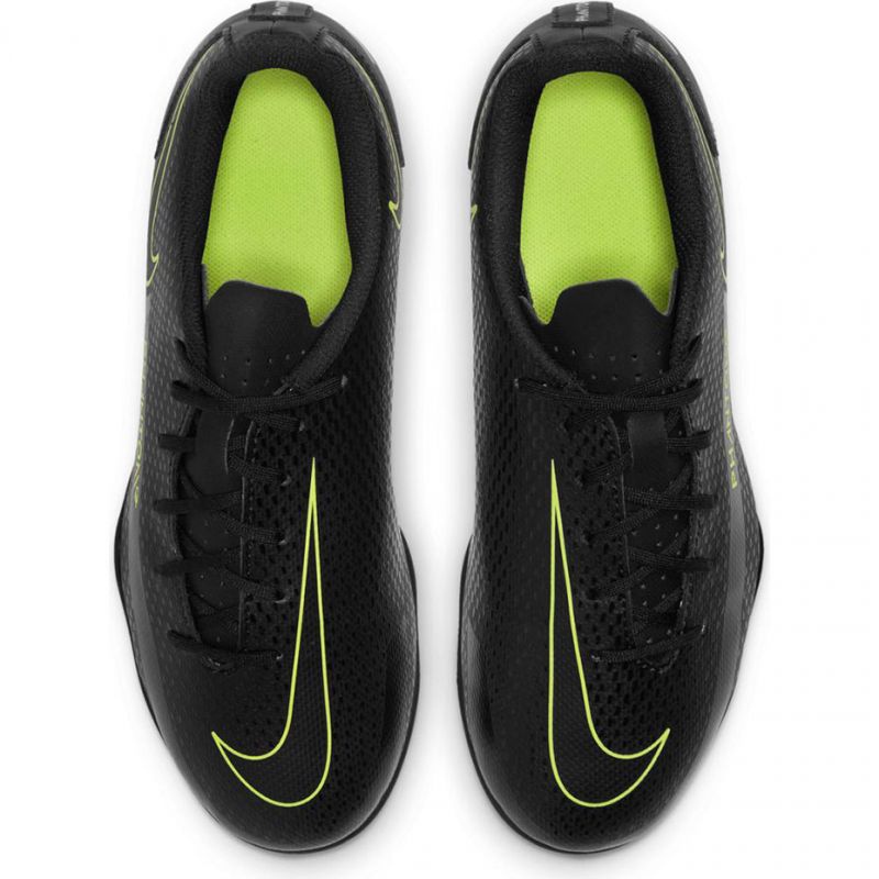 Ovaj model još je jedna inačica popularne linije Phantom iz Nike FTB Black X Prism Pack kolekcije koju ističe moderan dizajn u elegantnoj crnoj boji. Asimetrično vezivanje osigurava bolje pristajanje, a teksturirani završetak gornjeg dijela omogućuje izvrsnu kontrolu lopte. Zahvaljujući konfiguraciji klinova montiranih na laganom potplatu, cipele jamče optimalno prianjanje na prirodnoj travi i na umjetnim podlogama, što ih čini svestranim modelom za mlade igrače.
