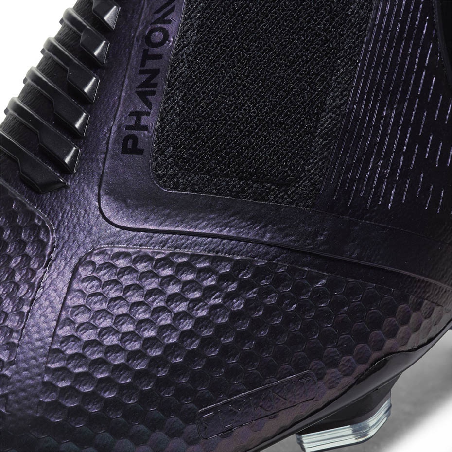 Model Phantom Venom Elite odlikuje se elegantnim crnim dizajnom s efektom prelijevanja koji privlači poglede. Izrađene od napredne Flyknit konstrukcije, cipele se savršeno prilagođavaju stopalu, pružajući nevjerojatnu udobnost i potporu zahvaljujući upotrebi Flywire vlakana. Teksturirani gornji dio omogućuje preciznu kontrolu lopte, a asimetrično vezivanje s djelomičnim pokrivanjem povećava prostor za manevar prilikom driblinga ili pucanja.