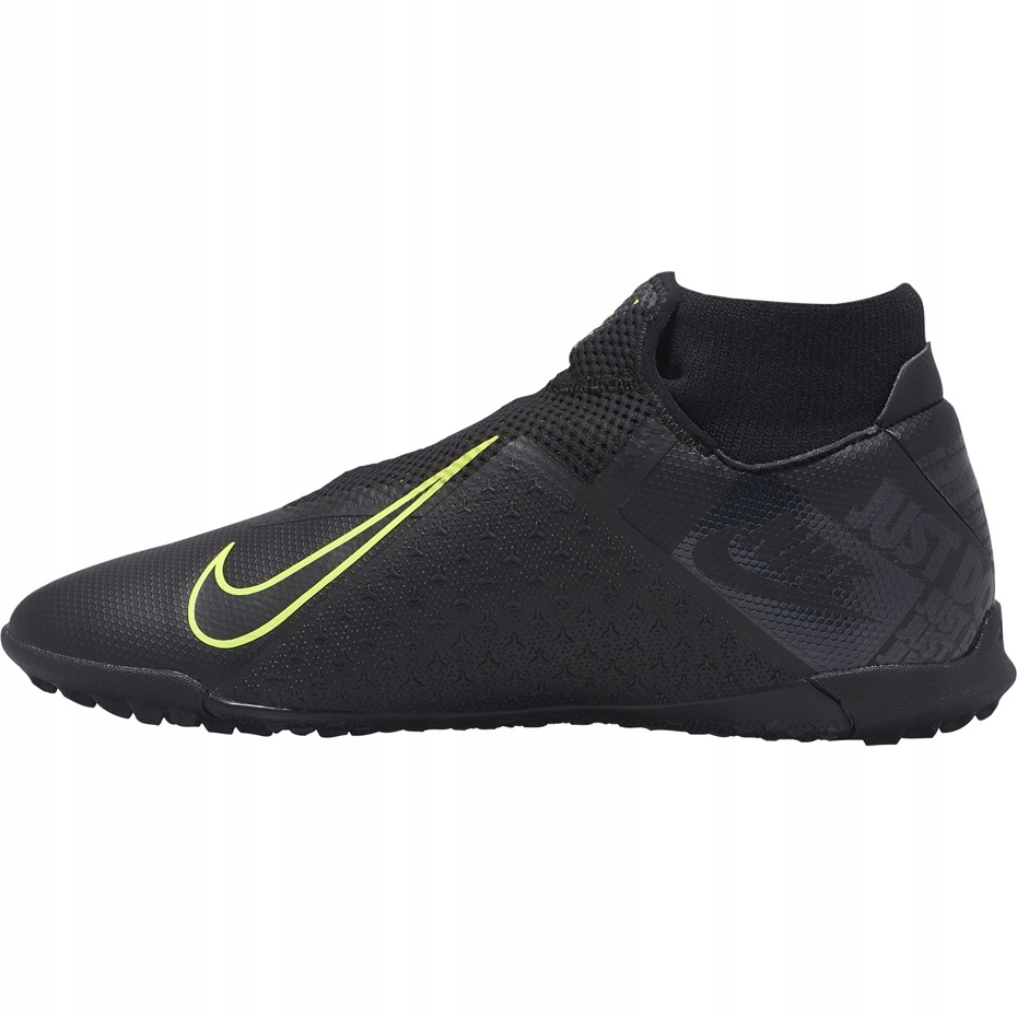 Nike Phantom Vsn Academy DF TF AO3269-007-Men's Football Cipele stvorene za igranje na umjetnom terenu. Moderan, potpuno crni dizajn kombinira moderan izgled s funkcionalnim rješenjima koja povećavaju kontrolu nad kuglom i stabilnost tijekom brze promjene smjera.