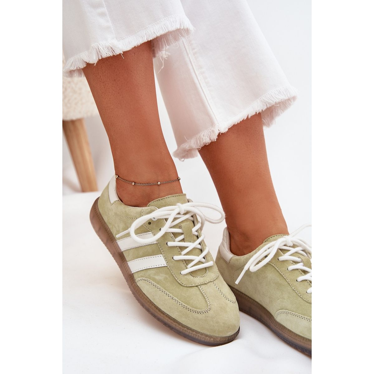 Evo niske kožne ženske botove u modernoj vapnenoj nijansi, ISmina modelu. Ove elegantne cipele kombiniraju prirodnu kožu i antilop, što im daje elegantan i sportski karakter. Zahvaljujući niskom gornjem dijelu i nedostatku pete, tenisice osiguravaju udobnost nošenja cijeli dan, savršeno prikladne i za svakodnevne stililizacije i u formalnijim prilikama.