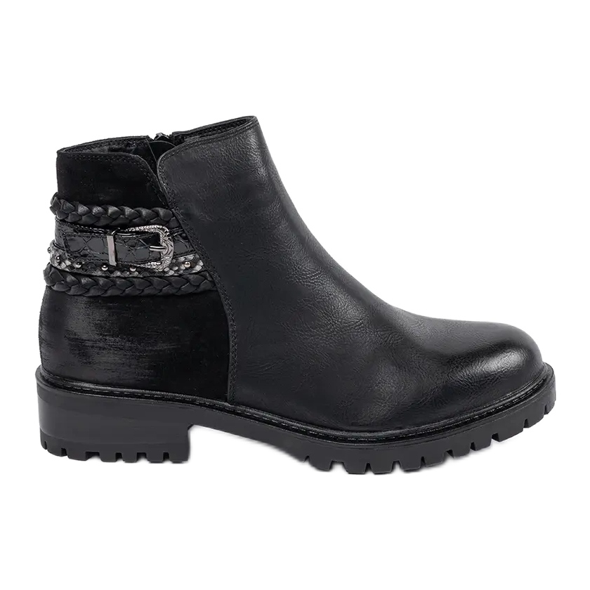 Gornjište modela seže iznad gležnja, a njihov patent zatvarač olakšava obuvanje. Ukrasne naramenice s ukrasnom kopčom daju im rock karakter, a forma osigurava stabilnost zahvaljujući širokoj peti visokoj 4 cm i potplatu sa zaštitnikom koji jamči prianjanje.