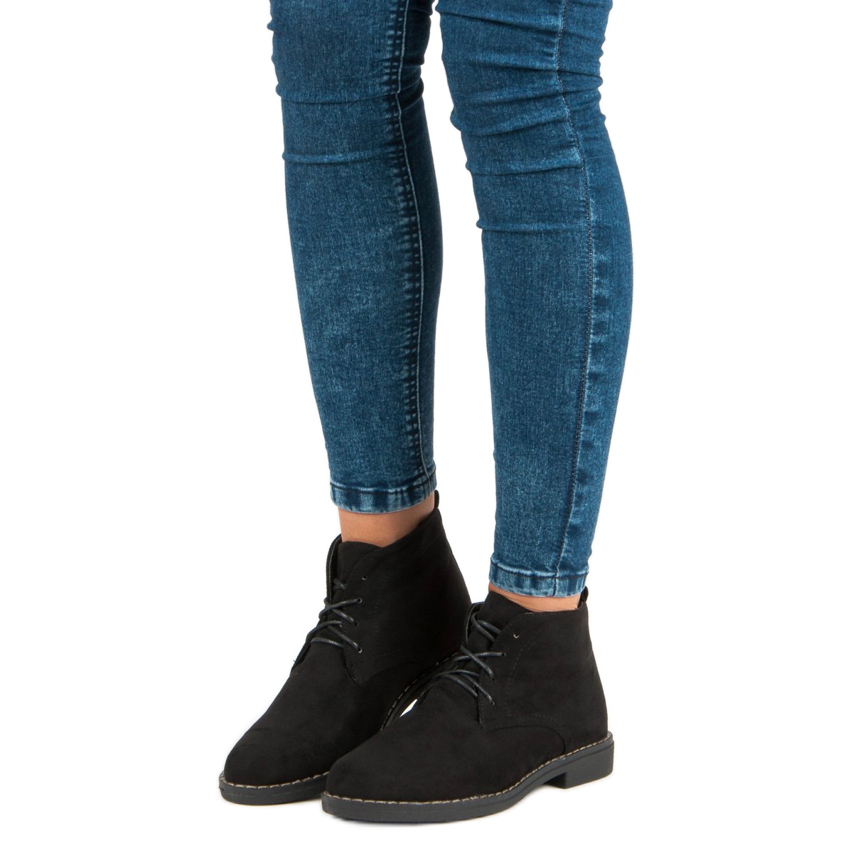 Riječ je o niskim gležnjačama na vezanje u crnoj boji koje spajaju udobnost i eleganciju na najvišoj razini. Izrađene od visokokvalitetnog ekološkog antilopa, ove gležnjače savršene su za hladne dane, nudeći ne samo moderan izgled, već i udobnost nošenja. Imaju ravnu petu visine 2,0 cm, što ih čini idealnim izborom za svakodnevnu upotrebu.
