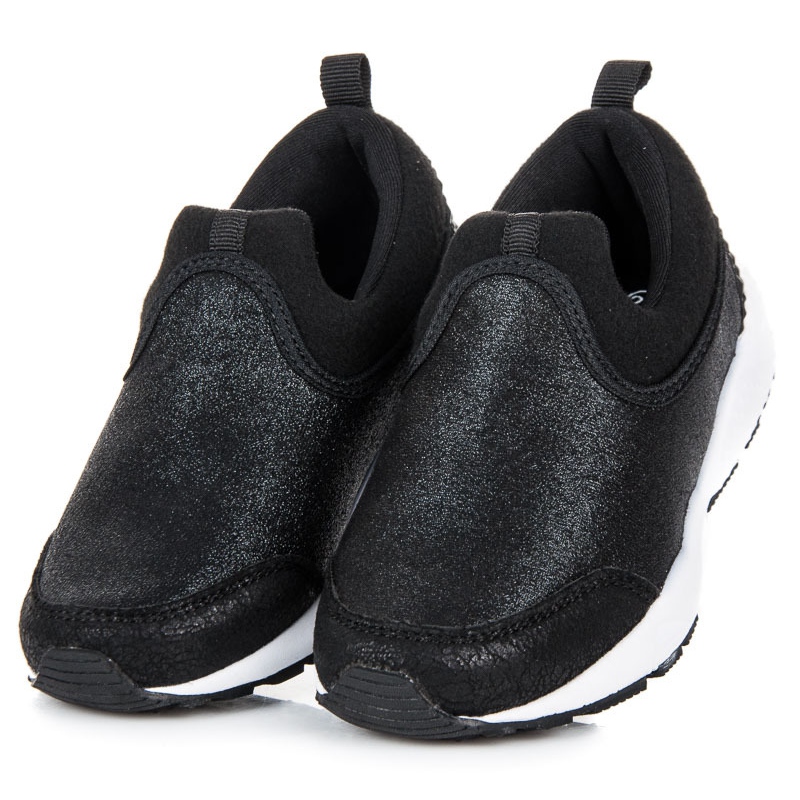 Elegantne i praktične slip-on tenisice za djevojčice brenda Kylie. Minimalistički, crni dizajn čini da cipele odgovaraju mnogim stilovima - od školskih i svakodnevnih do sportskih i casual. Lagana, prozračna tkanina osigurava udobno nošenje svaki dan, a gumeni, ugaženi potplat jamči dobro prianjanje.