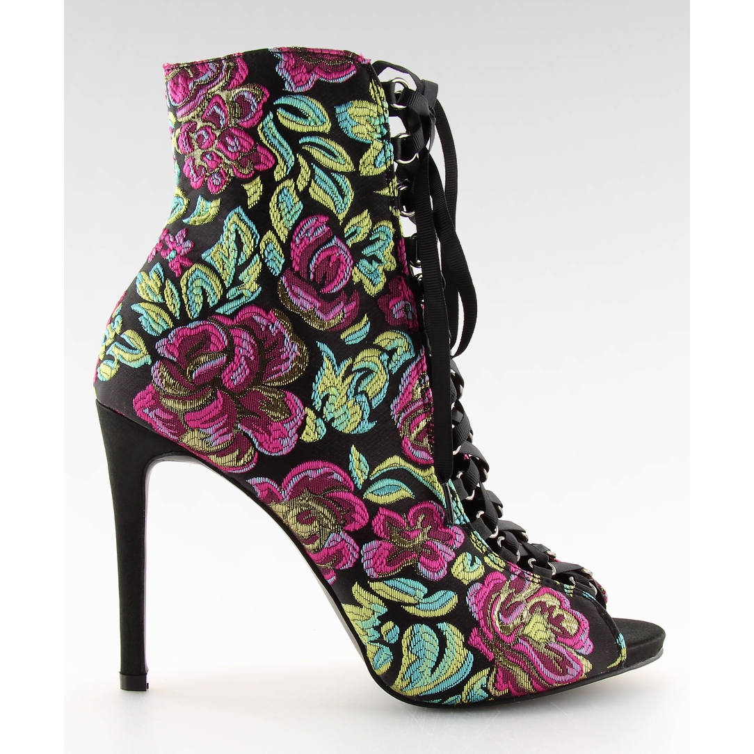 Otkrijte izvanredne BLACK/FUSHIA orijentalne gležnjače na vezanje koje će zasigurno privući pažnju! Ove prekrasne otvorene cipele s elegantnom petom od 10,5 cm savršen su izbor za svaku ženu koja svom stajlingu želi dodati jedinstven karakter.