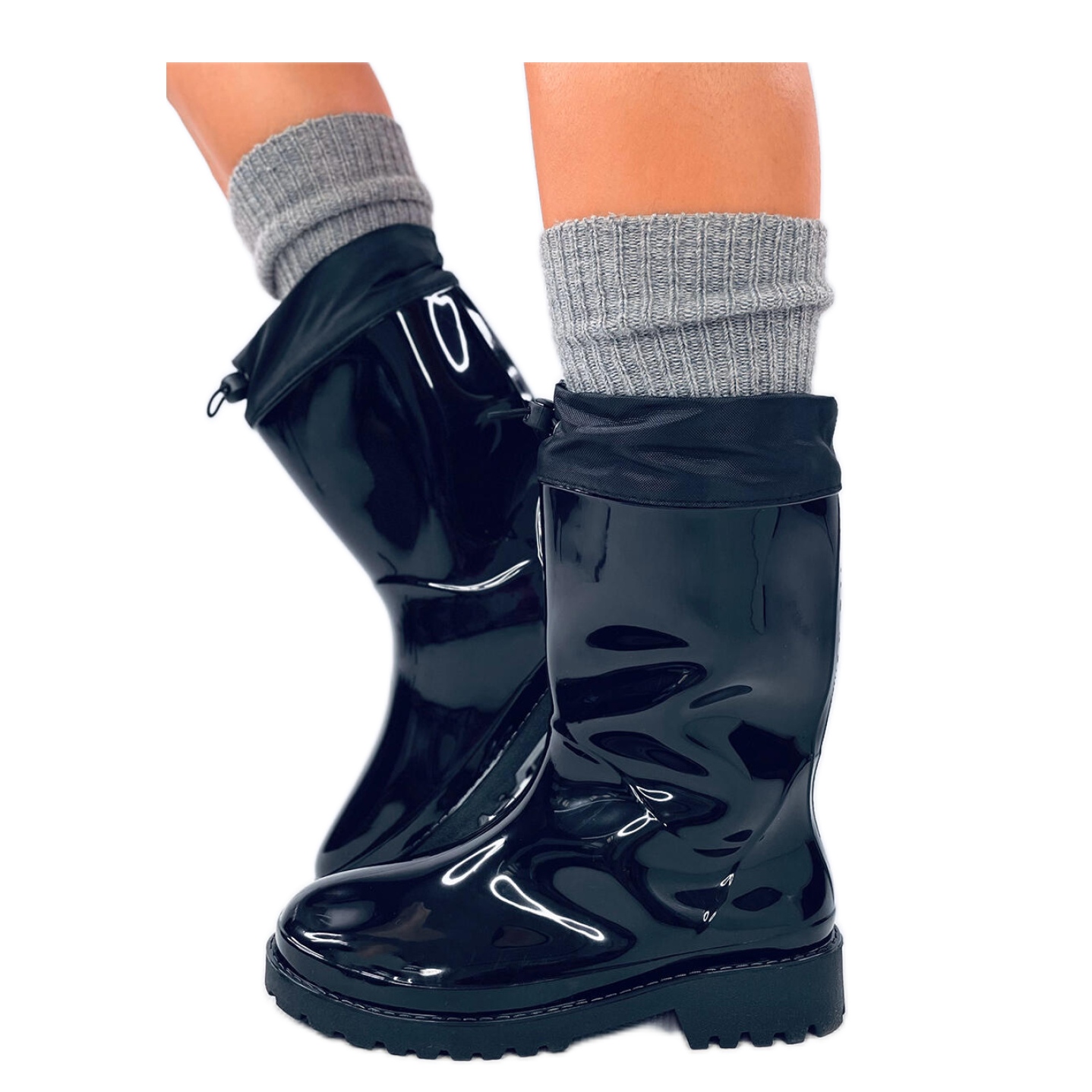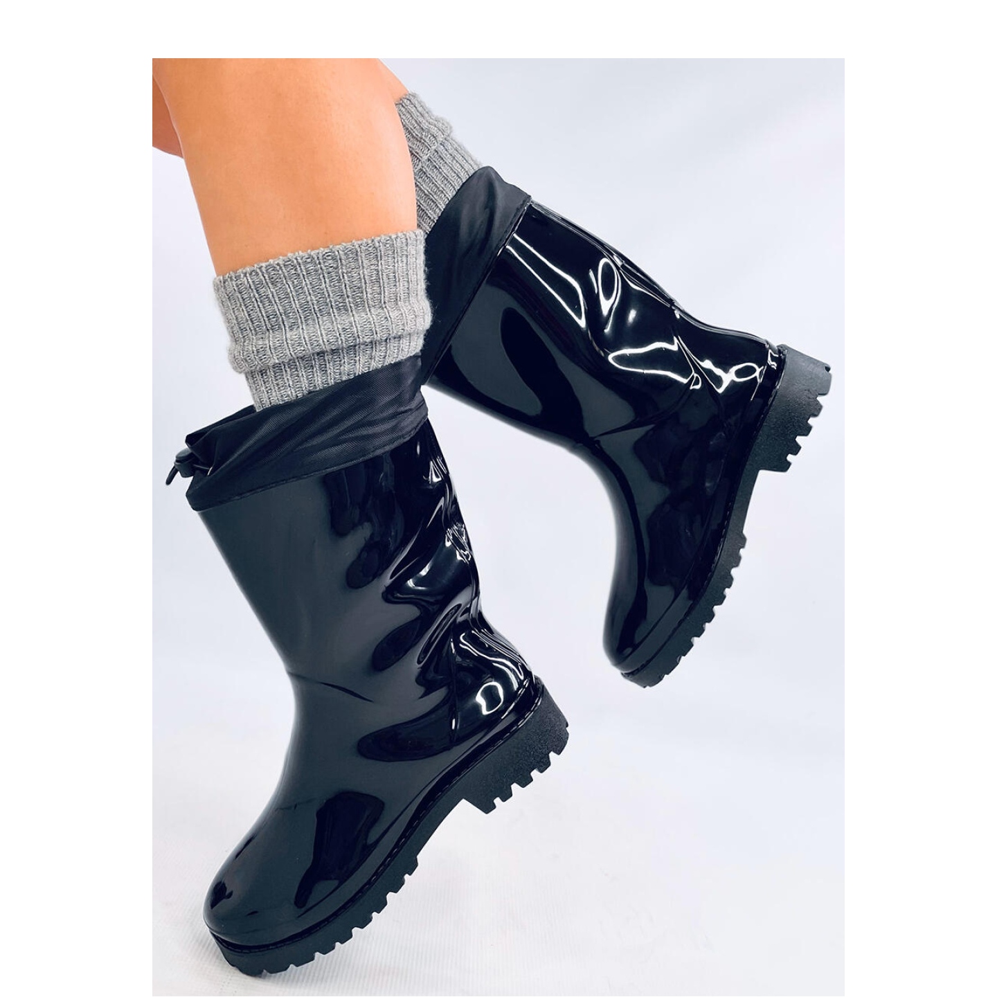 Izrađene od gume visoke kvalitete, galoše karakterizira finiš u modernom, lakiranom stilu, što im daje jedinstven karakter. Zahvaljujući visini pete od 3 cm, oni ne samo daju udobnost, već i dodaju lakoću figuri.