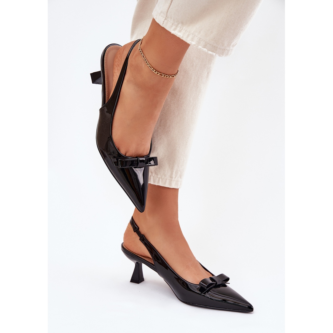 Otkrijte eleganciju i ženstvenost s lakiranim sandalama na igle s lukom u klasičnoj crnoj boji. Ove jedinstvene ženske sandale, izrađene od visokokvalitetne eko kože, odličan su izbor za posebne prigode. Njihovi šiljasti nos dodaju mršavost lik, a suptilni luk postavljen na prednju stranu daje im jedinstveni šarm.