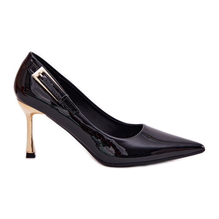 Otkrijte eleganciju i moderni stil zahvaljujući našim lakiranim potpeticama sa zlatnom stezaljkom u crnoj boji. Ove jedinstvene ženske cipele, izrađene od visokokvalitetne eko kože, kombiniraju udobnost i sofisticirani dizajn koji privlači pažnju.