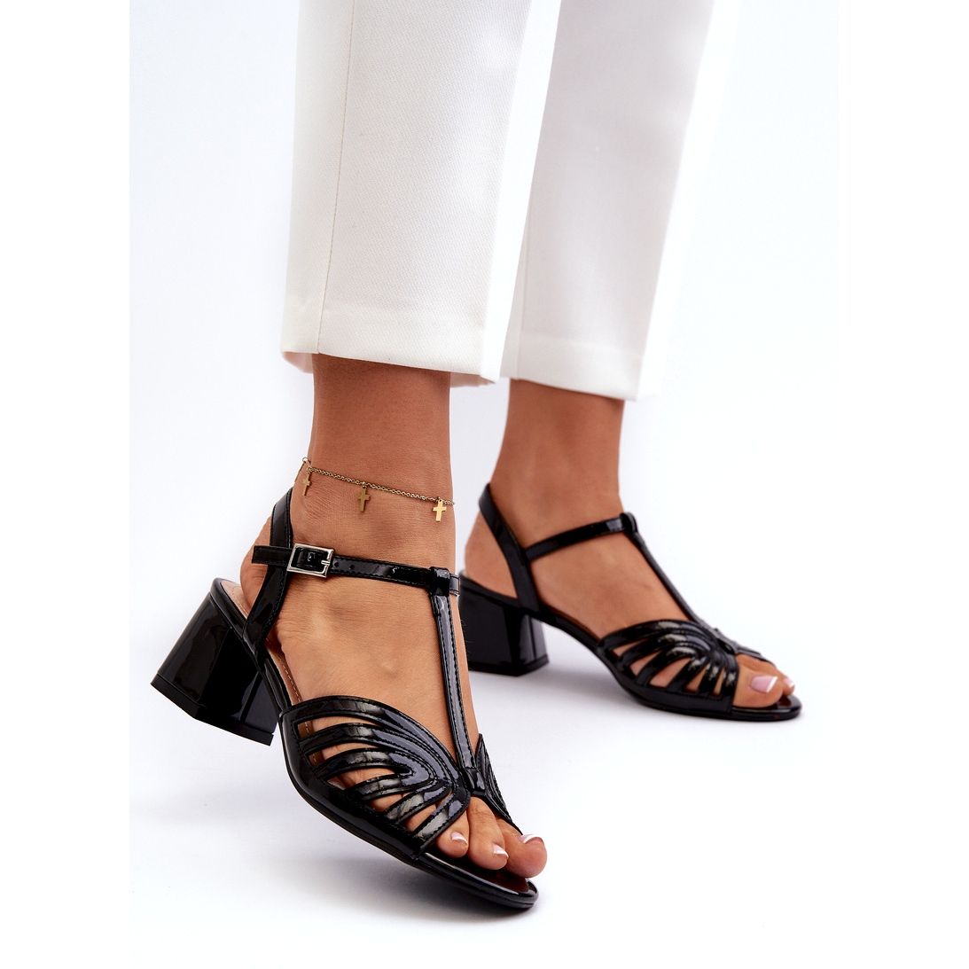 - Model: Lakirane ženske sandale na visoku petu