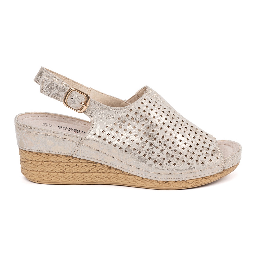 Goodin sandale u bež nijansi savršena su kombinacija stila i udobnosti, što će se sigurno svidjeti svakoj modernoj ženi. Ove otvorene cipele za klinove, izrađene od ekološke kože, razlikuju se prekrasnim, modernim uzorkom i izvanrednom lakoćom, što ih čini odličnim izborom za tople ljetne dane.