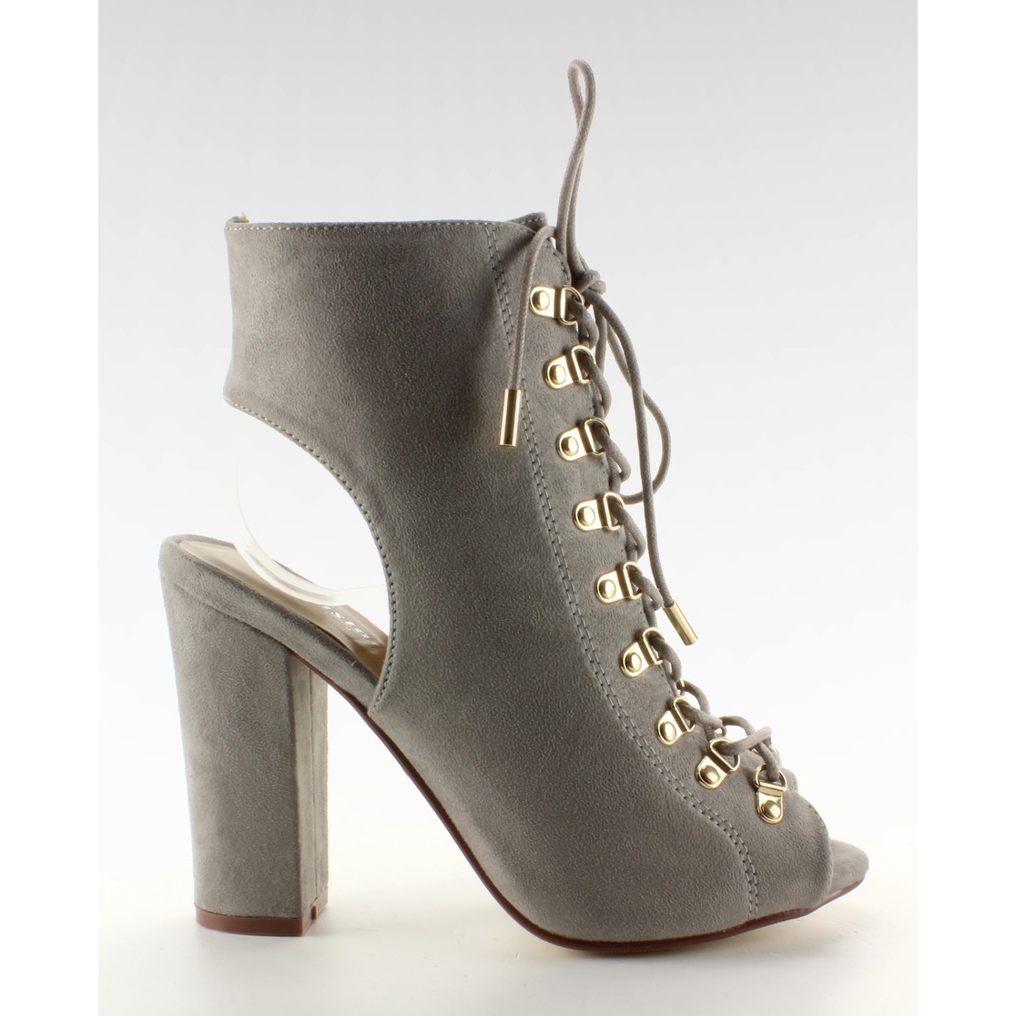 JZ-11P Sive cipele na vezanje s otvorenim prstima - sive, široka peta 11 cm