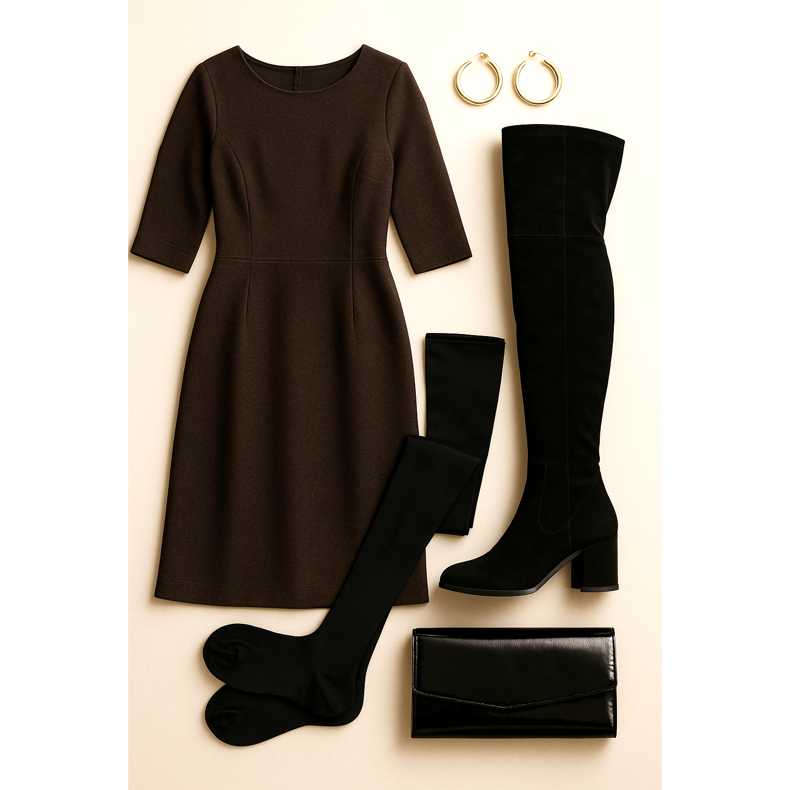 Overknee čizme mogu se nositi s klasom i profesionalizmom. Ključno je zadržati prave proporcije i eleganciju. ** S haljinom od olovke **: haljina koja završava neposredno iznad koljena + overknee čizme + duža jakna. Ostavite pauzu od 2-3 cm između kraja haljine i početka kozaka. Ovo je suptilan, elegantan izgled idealan za poslovne sastanke. ** S MIDI suknjom **: Half -box suknja + opremljena bluza + čizme vidljive samo odozdo. Suknja bi trebala pokriti većinu gornjeg dijela, ostavljajući samo donji dio vidljivim. ** S hlačama **: Uske hlače umetnute u čizme + duža tunika ili košulja + jakna. Ovo je moderan, profesionalni izgled. Sjetite se o prigušenim bojama i visokokvalitetnim materijalima. Pribor bi trebao biti minimalistički i elegantan.