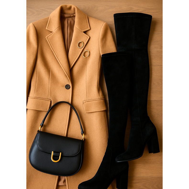 ** Materijal je važan **: Odaberite prirodnu kožu ili antilop visoku kvalitetu. Izbjegavajte sjajne, sintetičke materijale koji mogu izgledati jeftino. Matte finiš dodaje eleganciju i klasu. ** Visina pete **: Stabilna peta visoka 3-5 cm bit će najprikladnija i univerzalna. Post ili široka peta osigurat će stabilnost i nošenje udobnosti. Izbjegavajte vrlo visoke igle koje mogu izgledati neprimjereno. ** Visina gornjeg **: čizme trebaju završiti oko 5-10 cm iznad koljena. Previsoko im može biti neugodno i teško stilizirati, prenisko ne daju prekomjerni učinak. ** Fit **: Gornji se dio treba držati za nogu, ali ne biti previše tijesan. Lagano nabora na koljenu je prirodno i dodaje karakter. ** Boje **: Klasična crna, elegantna mornarsko plava, plemenita burgundska ili univerzalna smeđa. Izbjegavajte svijetle boje i dizajne.