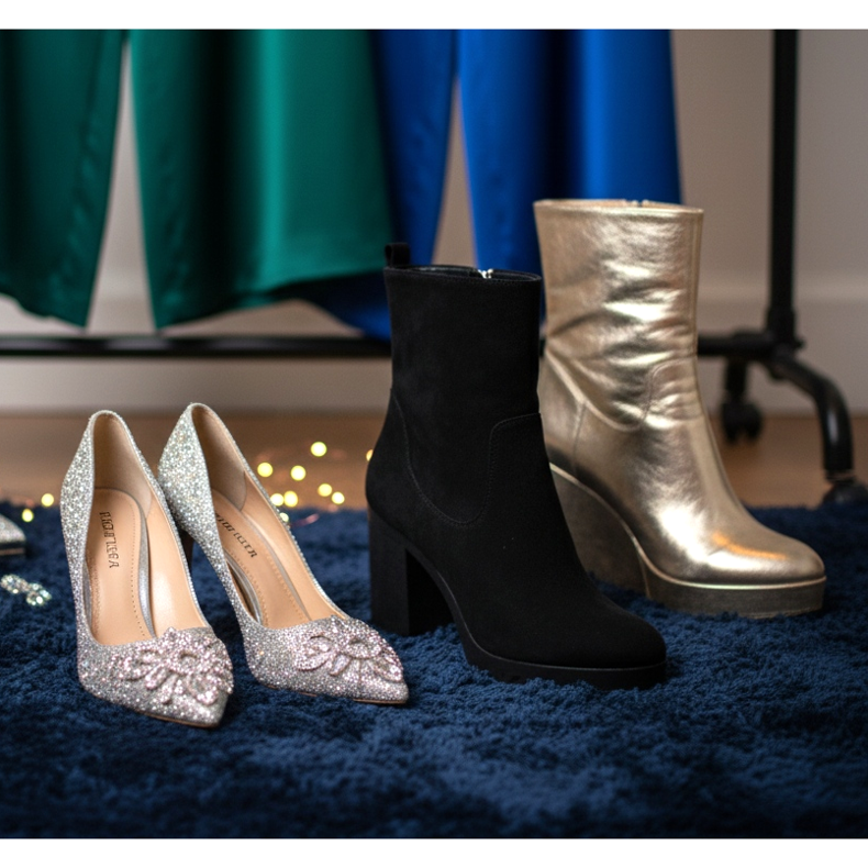 Savršeno rješenje bit će visoke potpetice prigušenih boja koje možete uskladiti s ostatkom outfita. Idete li na večernju zabavu, možete odabrati modele s upečatljivim ukrasima - na primjer, s kristalima ili metalik naglascima.