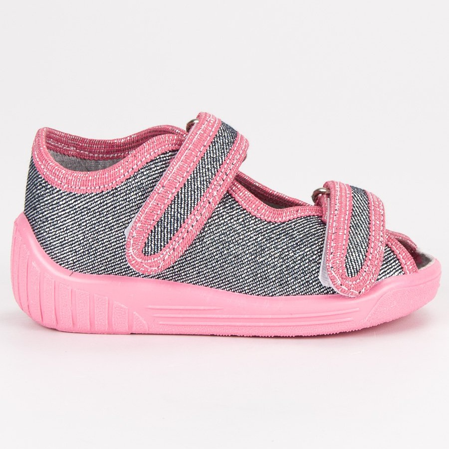Sive i ružičaste čičak papuče iz Butymodne udobna su i praktična opcija za djevojčice - dobro će poslužiti kod kuće, u vrtiću, u školi i na dvorištu. Izrađene od mekog tekstilnog materijala, s umetkom od prirodne kože, osiguravaju udobnost nošenja tijekom cijelog dana. Gumeni potplat s gazištem poboljšava prianjanje i smanjuje rizik od klizanja, a kopčanje na čičak olakšava obuvanje i brzo prilagođavanje cipele nozi.