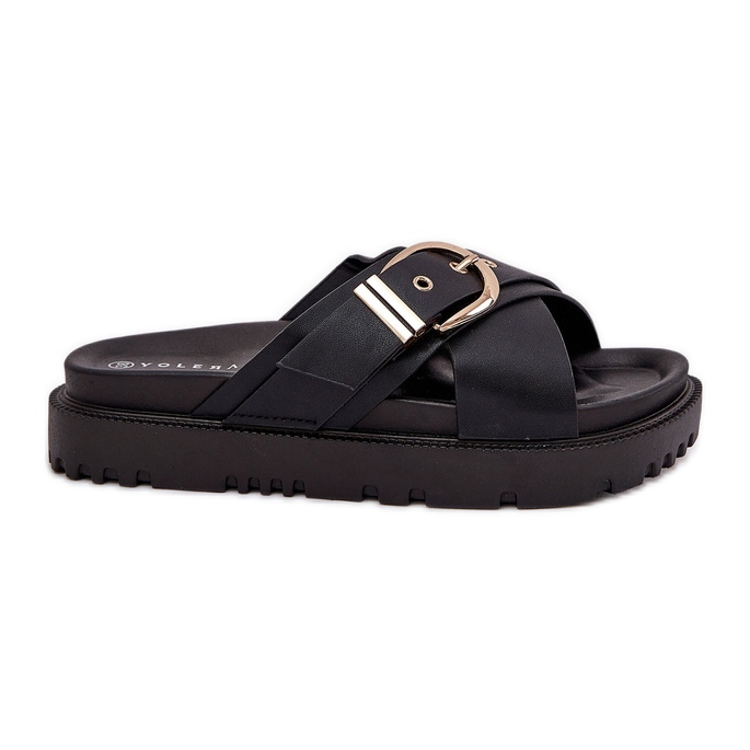 Pojedinosti: Papuče na platformi s crnom kopčom crna