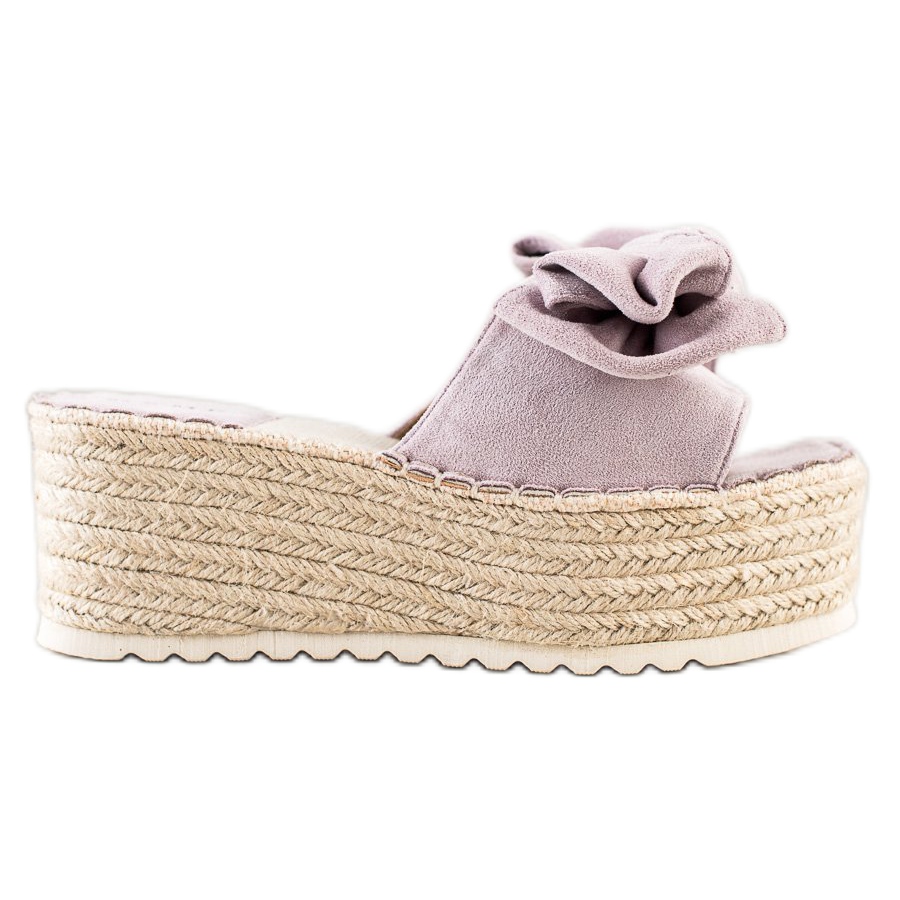 SHELOVET SHELOVET Papuče na platformi s mašnom ljubičasta
