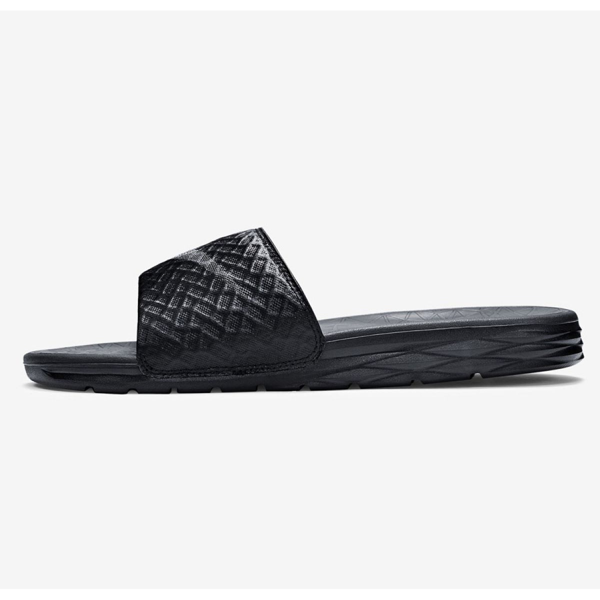Japanke Nike Benassi Solarsoft Slide 705474-091 - klasična crna verzija koja će dobro funkcionirati svaki dan, na plaži i uz bazen. Minimalistički, jednobojni dizajn u univerzalnoj, unisex veličini spaja jednostavnost s udobnošću, što ih čini praktičnim dodatkom vašoj ljetnoj garderobi.