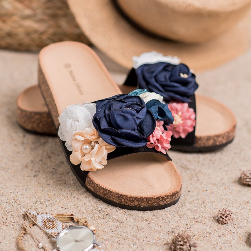 Pojedinosti: SHELOVET Papuče od antilopa s cvijećem crna