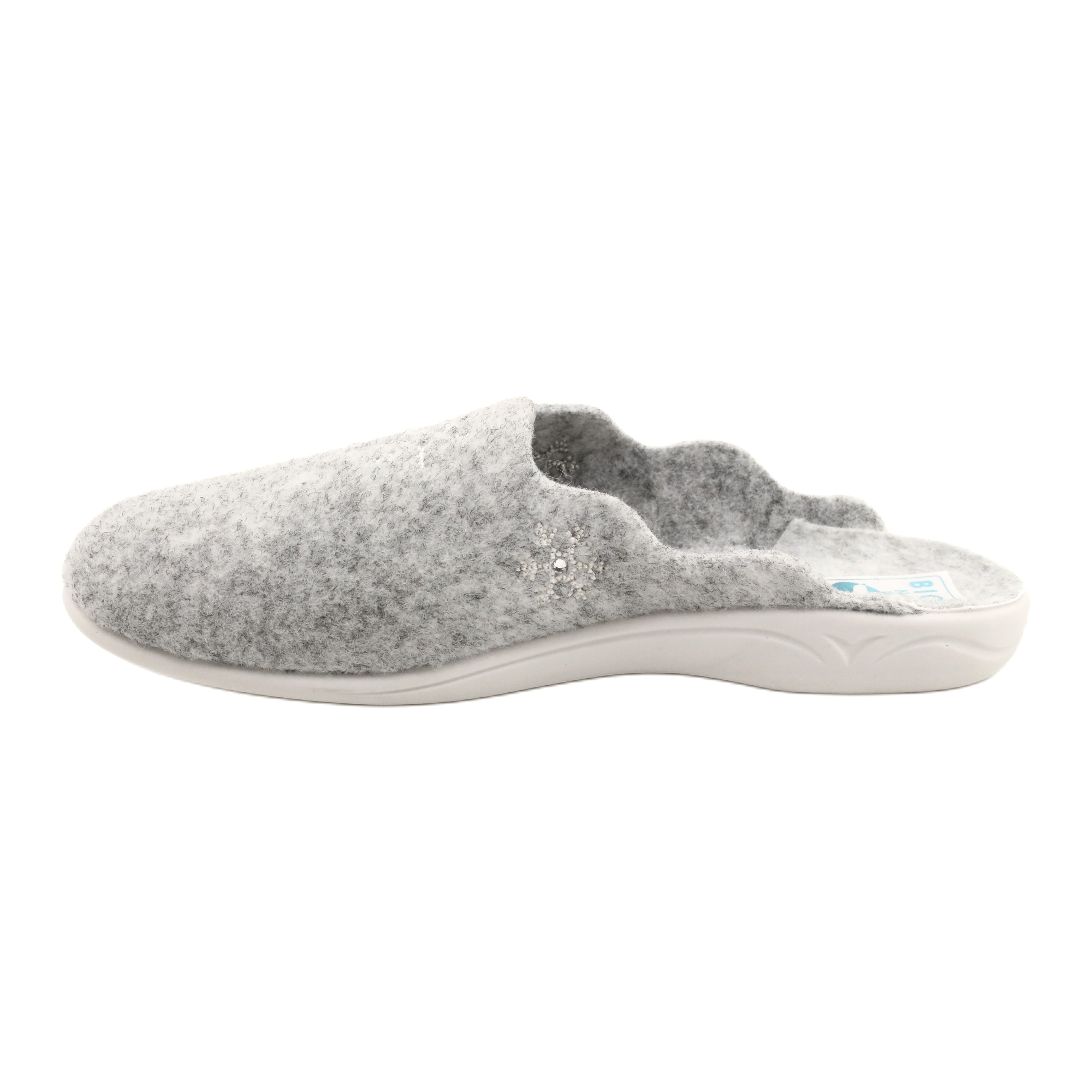 Unutrašnjost papuča, također izrađena od filca, pruža izvrsnu izolaciju, a PU potplat od pjenaste sintetike apsorbira mikro udarce, što svaki korak čini laganim i udobnim. Sive boje papuča uklopit će se u svaki interijer, a ukrasni kamenčići dodaju im eleganciju i stil.